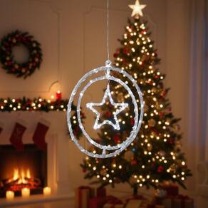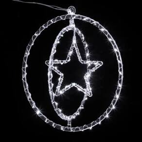 Ilumine seu ambiente com elegância e um toque moderno com a Argola Dupla com Figura de Estrela 80 LEDs Branco da Global. Perfeita para compor decorações natalinas, vitrines, festas ou até mesmo ambientes internos e externos durante o ano todo, esta peça combina design sofisticado e iluminação suave em LED, criando um efeito visual encantador.