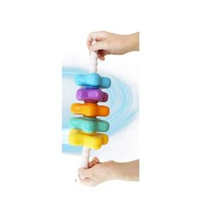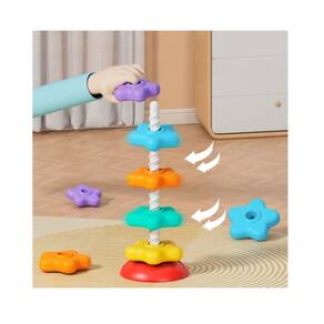 - O que vem no brinquedo? - 01 base - 01 haste em espiral - 05 argolas em formato de estrela de tamanhos diferentes para encaixar - Passe um tempo de qualidade com seu filho, acompanhando cada descoberta e cada risada!