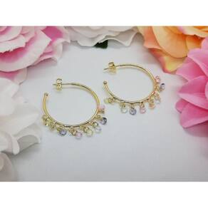 especificações técnicas: - tipo: brinco argola - material: folheado - pedra: zircônia colorida - diâmetro: 3 cm - garantia: semi joia com garantia de qualidade