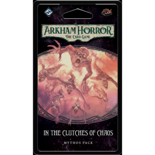 In the Clutches of Chaos é o quinto Mythos Pack do ciclo The Circle Undone.Após a sua fatídica investigação em "Union and Disillusion", o estado da cidade continua a decair. Fendas na realidade começam a rasgar o tecido da Terra, e uma leve melodia de flautas discordantes pode ser ouvida pelas ruas de Arkham. Cidadãos assustados se trancaram em suas casas, todavia você continua a patrulhar as ruas, desesperado por encontrar alguma solução para acabar com o caos.Em "In the Clutches of Chaos", o "doom" não aumenta em sua taxa normal. Em vez disso, as brechas são realizadas em vários locais diferentes, marcados por tokens de recursos. Quando brechas suficientes foram feitas em um único local, ocorre uma incursão. Uma incursão adiciona o "doom" à sua localização, e faz com que as brechas se espalhem, abrindo fendas na realidade em locais conectados. Seu objetivo é evitar incursões removendo as violações que as causam, mas isso só pode ser feito ativando as habilidades de ação em cada local. Se você não mantiver o controle sobre as violações, em breve poderá encontrar-se sobrecarregado com Arkham caindo na loucura. Você não pode permitir que isso aconteça!