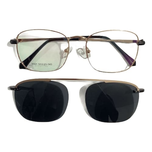 Armao de metal + 1 lente clip on preta Atributo das lentes: Polarizadas Material da armao: Metal Acompanha: 1 case (de pano ou de plástico, de acordo com a disponibilidade) e 1 flanela