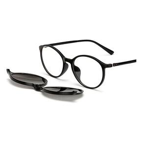 Item: Armação de óculos com lentes transparentes (É possível substituí-las por lentes de grau) + 1 lente clip on preta