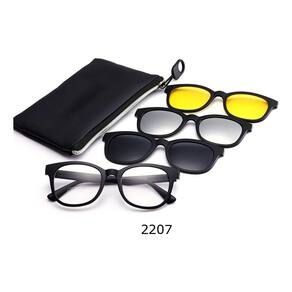 Contém: 1 armação para óculos+ 3 lentes clip on (2 Solares e 1 Noturna) Material da armação: Plástico (Resistente) Material das lentes: Resina Atributo das lentes: Prateada: Polarizada e com proteção UV400 Amarelo e preta: Proteção UV400