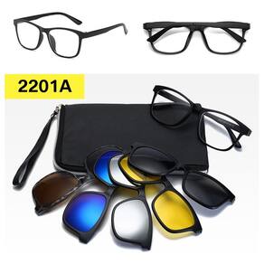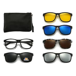 Item: 1 Óculos de lente transparente (Pode colocar grau) + 5 Lentes Clip On (Lente amarela, azul, marrom com a armação leopardo, espelhada e preta) para serem utilizadas por cima do óculos. MODELO 2201