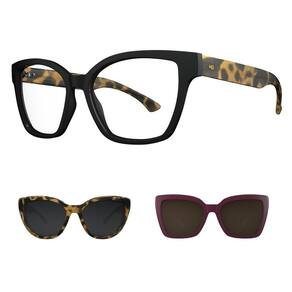 Gênero: feminino Cor da armação: preto brilho marrom tartaruga fosco Cor da lente: clip on com lente cinza polarizada Material da armação: polytech