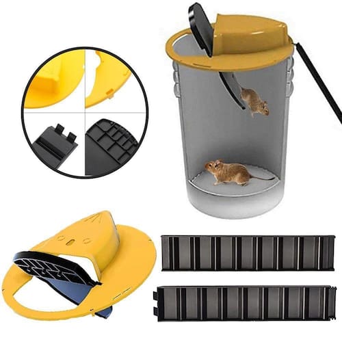 Armadilha para captura de ratos higienica, fácil de montar, não há necessidade de utilizar cola. Feita para capturar, mas pode também encher o balde com água para que a armadilha seja letal. E você pode usa-lá sempre, pois é reutilizavel.