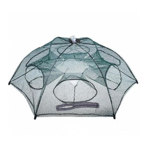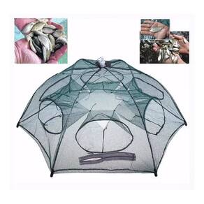 Anúncio referente a 1 unidade da rede armadilha covo retrátil de 6 bocas. A armadilha covo retrátil possui 90 cm de diâmetro e rede de pesca com 6 bocas. Fácil de usar, basta puxar a corda no topo e o covo será aberto automaticamente estilo guarda chuva. Design com zíper para facilitar a retirada de pequenos peixes e frutos do mar, como lambaris, enguias, siri, caranguejo, lagosta, piabas, pequenas tilápias e camarões. Ferramenta maravilhosa para os amantes da pesca, podendo ser dobrado em um tamanho pequeno, leve e portátil. Especificações: Modelo: covo retrátil; Cor: verde; Material da malha: nylon; Tamanho: 90 cm x 90 cm; Peso do pacote: 0.263 kg; Altura após a abertura: 35 cm; Zíper para facilitar a retirada das presas.