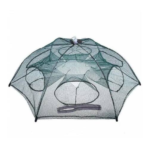 Anúncio referente a 1 unidade da rede armadilha covo retrátil de 6 bocas. A armadilha covo retrátil possui 90 cm de diâmetro e rede de pesca com 6 bocas. Fácil de usar, basta puxar a corda no topo e o covo será aberto automaticamente estilo guarda chuva. Design com zíper para facilitar a retirada de pequenos peixes e frutos do mar, como lambaris, enguias, siri, caranguejo, lagosta, piabas, pequenas tilápias e camarões. Ferramenta maravilhosa para os amantes da pesca, podendo ser dobrado em um tamanho pequeno, leve e portátil. Especificações: Modelo: covo retrátil; Cor: verde; Material da malha: nylon; Tamanho: 90 cm x 90 cm; Peso do pacote: 0.263 kg; Altura após a abertura: 35 cm; Zíper para facilitar a retirada das presas. Ean: 7890448429555