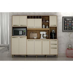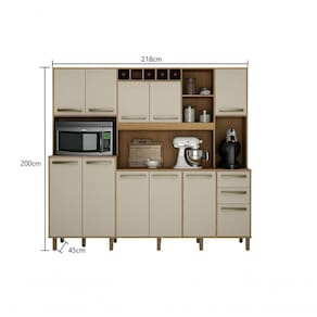 Seu tamanho de 2,00 m de altura e 2,18 m de largura permite acomodar vários itens de maneira organizada e melhor, além de possuir espaço para micro-ondas em seu nicho lateral, deixando tudo no seu devido lugar. Tenha uma cozinha completa em um só produto, medidas ideias e acabamento fino com matéria prima de alta qualidade deixando sua cozinha muito mais elegante e bonita.