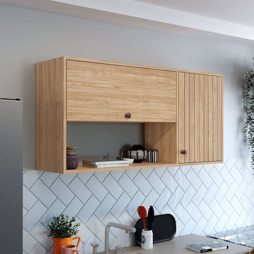 O Armário de Cozinha Aéreo 2 Portas Movelbento MB 1036 tem um excelente custo benefício e um amplo espaço interno. Produzido em MDP 15 mm com acabamento em pintura UV, que garante maior durabilidade e resistência, possui puxadores em ABS. Uma solução prática para deixar o seu ambiente organizado. Acabamento da Prateleira: Pintura UV Escala de Brilho da Prateleira: Fosco Acabamento da Porta: Pintura UV Escala de Brilho da Porta: Fosco Material do Puxador da Porta: ABS Ambiente Principal: Cozinha Complexidade da Montagem: Média: pode ser montado por mais de uma pessoa e/ou necessite de maior conhecimento para montagem Cor: Mel Cor do Produto: Mel Cor Interna: Mel Escala de Brilho: Fosco Espessura do Material da Estrutura: 15 mm Itens Inclusos: 1 Armário, 1 Kit Ferragem, 1 Manual de Montagem Manual de Montagem e Instalação: https://product-hub-prd.madeiramadeira.com.br/909418/documents/03ef2bdf-313a-4952-bb53-043a37093da61971825395217162283224674.pdf Material da Dobradiça/Corrediça da Porta: Aço Material da Porta: MDP Material da Prateleira: MDP modular: Sim Necessita Montagem: Sim Origem do Produto: Nacional Peso: 21 kg Peso Máximo por Prateleira: 7 kg Possui Espelho: Não Possui Possui Pés: Não Possui Portas: Sim Possui Prateleiras: Sim Recomendações de Uso, Manutenção e Limpeza: Antes de limpar recomenda-se que seja retirada toda a poeira com um espanador ou flanela seca para evitar riscos na superfície, após utilize um pano umido em água, macio e limpo. Antes de limpar recomenda-se que seja retirada toda a poeira com um espanador ou flanela seca para evitar riscos na superfície, após utilize um pano umido em água, macio e limpo. Sapatas Niveladoras: Não Sistema de Montagem: Parafuso, Cavilha Suporta Até (kg): 15 kg Tipo de Dobradiça/Corrediça da Porta: Simples Tipo de Puxador da Porta: Externo