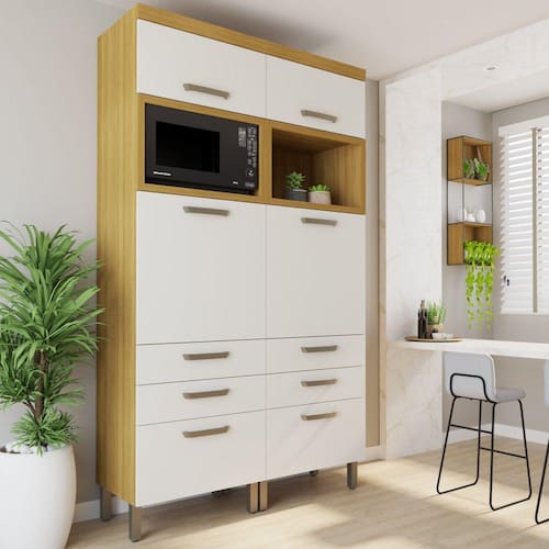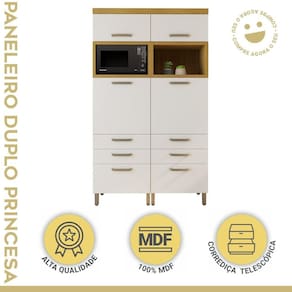 Transforme a bagunça da sua despensa em ordem e praticidade com a nossa despenseira inteligente. Com design compacto e durável, ela maximiza o espaço e mantém seus mantimentos organizados e de fácil acesso. Simplifique sua vida na cozinha e desfrute de uma despensa impecável com nossa despenseira. Adquira já e descubra o prazer de uma organização eficiente! Acabamento da Prateleira: Impressão Escala de Brilho da Prateleira: Fosco Acabamento da Gaveta: Impressão Escala de Brilho da Gaveta: Fosco Material do Puxador da Gaveta: MDF Acabamento da Porta: Impressão Escala de Brilho da Porta: Fosco Material do Puxador da Porta: ABS Acabamento dos Pés: Pintura Altura dos Pés: 10 cm Ambiente Principal: Cozinha Complexidade da Montagem: Alta: deve ser montado por um montador especializado Cor: Freijó/Off White Cor do Produto: Freijó/Off White Escala de Brilho: Fosco Gaveta com Chave: Não Itens Inclusos: 1 Despenseiro, Kit Ferragens e Manual de Montagem Linha ou Coleção: Princesa Manual de Montagem e Instalação: https://product-hub-prd.madeiramadeira.com.br/900212/documents/f55ff1d9-b9f2-476e-8f72-e8e0a06d9fadINCESA206420CM201002520MDF.pdf Material da Dobradiça/Corrediça da Porta: Metálica Material da Gaveta: MDF Material da Porta: MDF Material da Prateleira: MDF Material dos Pés: Plástico modular: Sim Montagem Flex: Não Necessita Montagem: Sim Origem do Produto: Nacional Pés Reguláveis: Sim Peso: 128,2 kg Peso Máximo por Gaveta: 5 kg Peso Máximo por Prateleira: 10 kg Possui Espelho: Não Possui Possui Pés: 08 Possui Portas: Sim Possui Prateleiras: Sim Possui Rodízio: Não Recomendações de Uso, Manutenção e Limpeza: Utilizar pano macio levemente umedecido e na sequencia pano macio seco. Sapatas Niveladoras: Sim Sistema de Montagem: Parafusos, Cavilhas e Minifix. Suporta Até (kg): 100 kg Tipo de Corrediça da Gaveta: Telescópica Tipo de Dobradiça/Corrediça da Porta: 35 mm Tipo de Puxador da Gaveta: Externo Tipo de Puxador da Porta: Externo