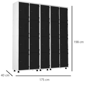 O Armário Roupeiro de Aço 20 Portas Vestiário Academia Guarda-Volumes com trinco para cadeados é perfeito para alojamentos, escritórios, almoxarifados, laboratórios, hospitais, farmácias, depósitos, academias, supermercados, vestiários, e diversos outros ambientes.