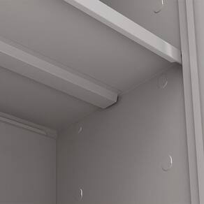 Ele é composto por 03 prateleiras reforçadas, sendo uma fixa e três reguláveis. Super resistente, suporta até 30Kg bem distribuídos por prateleira. Possui pés niveladores para melhor adaptação e um perfeito acabamento, evitando assim riscos no piso. Sua porta, com fechadura tipo Yale e puxador estampado em perfil PVC possui também reforço ômega e um prefeito acabamento que proporciona maior praticidade de uso.