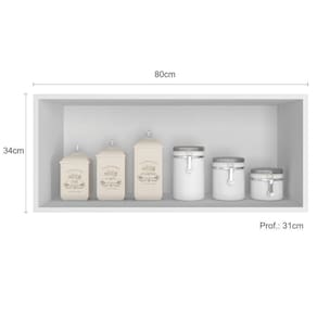 Armário Aéreo 1 Porta 80 Cm Unna Poliman Branco O Armario Aereo Geladeira 1 Porta basculante Unna da Poliman Moveis e um produto elegante ideal para otimizar espaco podendo ser utilizado sobre a geladeira ou fogao. Com 1 porta basculante, dobradicas reforcadas de 35mm e pistao a gas permitindo uma abertura mais suave que mantem a porta suspensa, alem do puxador modelo retro em polimero com acabamento em alta cobertura para deixar seu movel ainda mais elegante. Estrutura em MDP Perffect Touch de maior resistencia e com protecao Bacterban que inibe a proliferacao de fungos e bacterias na superficie do movel, a porta e almofadada/moldurada em MDF inspirada nas classicas cozinhas . Produto ecologicamente correto com embalagens preparadas para evitar e permitir que o produto chegue em perfeito estado em sua casa. Perfeita combinacao com os mais variados ambientes. Qualidade que so a Poliman oferece em seus produtos. DIMENSOES Altura: 34,4 cm Largura: 80 cm Profundidade: 31 cm Peso: 9 Kg