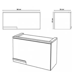 Caracteristicas: 1 Porta basculante com borda em PVC Puxadores em madeira Dobradicas caneco 35MM com amortecimento Estrutura em MDP 15mm Fixacao com minifix Acabamento pintura UV