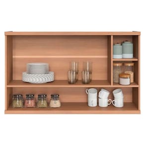 Praticidade Possuindo 1 porta basculante com pistões a gás e dobradiças com amortecedor, que além de facilitar na abertura, não deixam com que as portas batam no momento do fechamento, o armário Macadâmia é ideal para armazenar copos, xícaras, pratos, mantimentos e muito mais. Além disso, com seus 3 nichos, você pode armazenar facilmente desde potes de tempero até decorações.