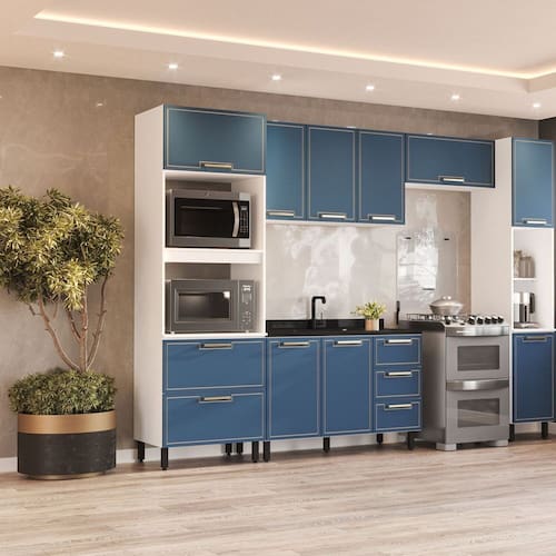 O Armário Aéreo 1 Porta Basculante Amara da Politorno Móveis é a solução ideal para quem busca otimizar o espaço acima da geladeira, aproveitando cada canto da cozinha de forma prática e elegante. Com 36 cm de altura, 80 cm de largura e 30,5 cm de profundidade, ele é compacto, mas oferece boa capacidade de armazenamento. Fabricado com matéria-prima em MDP/MDF, o armário é resistente e durável, enquanto o acabamento usinado proporciona um visual moderno e sofisticado. O revestimento em FF/UV oferece proteção contra umidade e facilita a manutenção, garantindo um móvel sempre bonito e funcional. Esse armário aéreo é perfeito para armazenar utensílios, mantimentos e objetos leves, mantendo a cozinha organizada e otimizada. Acabamento da Porta: Pintura UV Escala de Brilho da Porta: Semi-Fosco Material do Puxador da Porta: Alumínio Ambiente Principal: Cozinha codigo_ean: 7900288064523 Complexidade da Montagem: Média: pode ser montado por mais de uma pessoa e/ou necessite de maior conhecimento para montagem Cor: Branco/Azul Cor do Produto: Branco/Azul Cor Interna: Branco Escala de Brilho: Semi-Fosco Itens Inclusos: 1 Armário Aéreo Desmontado, 1 Kit de Ferragens,1 Manual de Montagem e 1 Termo de Garantia Linha ou Coleção: Amara Manual de Especificação Técnica: https://product-hub-prd.madeiramadeira.com.br/977197/documents/96f1df77-d648-49e7-9d7f-e4b12053131b2673383622417388717163378.pdf Manual de Montagem e Instalação: https://product-hub-prd.madeiramadeira.com.br/977197/documents/2e2ea642-d9da-4df8-be14-e90269f4cf9b2673382622417388717151836.pdf Marca: Politorno Material da Dobradiça/Corrediça da Porta: Metálica Material da Porta: MDF/MDP Necessita Montagem: Sim Origem do Produto: Nacional Peso: 10,11 kg Possui Espelho: Não Possui Possui Pés: Não Possui Portas: Sim Possui Prateleiras: Não Produto Montado: Sim Recomendações de Uso, Manutenção e Limpeza: Utilize um pano macio umedecido com água e sabão neutro, seguido de pano seco. Não utilize produtos químicos ou abrasivos para limpeza, pois estes danificam o revestimento do móvel. Sapatas Niveladoras: Não Sistema de Montagem: Acompanha bucha e parafuso para fixação na parede Suporta Até (kg): 10 kg Tipo de Dobradiça/Corrediça da Porta: Soft close Tipo de Puxador da Porta: Externo undefined: 977198