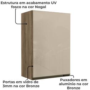 Design que une estética, robustez e eficiência para seu dia a dia. O Armário aéreo é um móvel suspenso, produzido 100% em MDP de 15mm com acabamento em pintura texturizada UV (fosco) ou (semibrilho). Possui 1 porta em vidro de 3mm equipada com dobradiças metálicas e puxadres em aluminio. Este móvel chegará na sua casa separado em 01 volume.