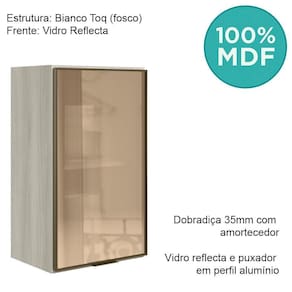 Armario Aereo 1 Porta Vidro Mdf 40 Cm Kali 1220261 Bianco Toq Nicioli Bianco Toq