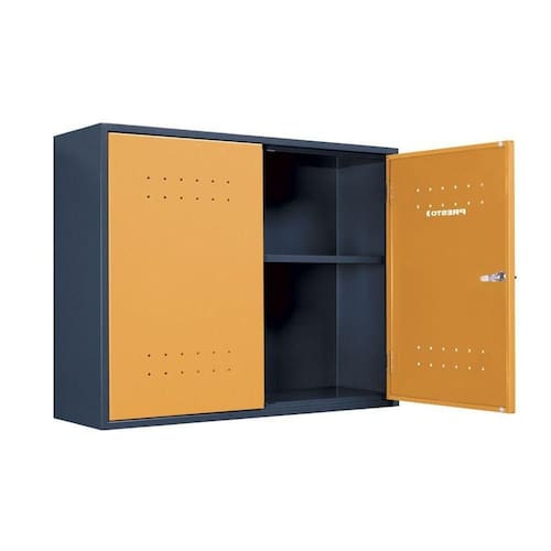 Fabricado em chapa de aço resistente, o armário aéreo possui uma prateleira interna ampla, ideal para armazenar materiais e ferramentas diversos. Sua durabilidade é garantida pelo tratamento anticorrosivo e pintura eletrostática a pó, além de contar com ventilação nas portas, dobradiças internas e uma fechadura com chave para maior segurança. O batente de silicone na porta e os furos para fixação na parede são detalhes que fazem a diferença no dia a dia.