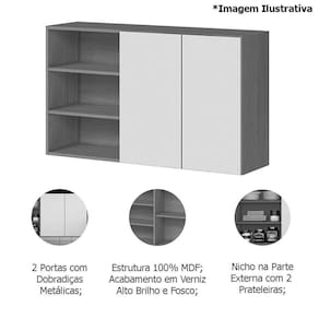 Características do Armário Aéreo 100% MDF Luna: - Estrutura em 100% MDF; - 2 Portas com Dobradiças Metálicas; - Possui Nicho com 2 Prateleiras; - Acabamento em Verniz Alto Brilho e Fosco; - Não Acompanha Objetos Decorativos; - Montagem por Conta do Comprador;