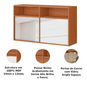 • 1 x Armário Aéreo 100% MDF Portas de Correr com Vidro Claire