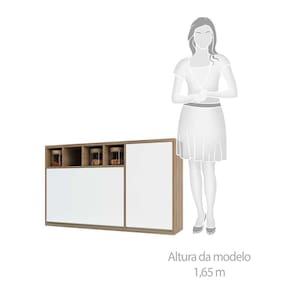 Armário Aéreo 120 Cm 1 Porta De Abrir 1 Porta Basculante E Nicho Superior Mel Luciane Móveis Vanilla Com Branco