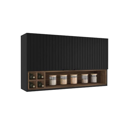 Armário para cozinha 120cm, com 2 portas e nicho garrafeiro em madeira, portas em aço com restura tipo ripada, organização com resistência. Versatilidade com beleza. A Pintura das portas tipo pintura fosca. Puxador de metal com designe requintado que facilita a abertura das portas e adiciona design aos detalhes. Com Dobradiças Slow Motion Acabamento da Porta: Pintura Acabamento da Prateleira: Pintura Ambiente Principal: Cozinha Complexidade da Montagem: Alta: deve ser montado por um montador especializado Cor: Preto/Grafite Cor do Produto: Preto/Grafite Cor Interna: Preto Escala de Brilho: Fosco Escala de Brilho da Porta: Fosco Escala de Brilho da Prateleira: Semi-Brilho Itens Inclusos: 1 Armário, Kit Ferragens e Manual de Montagem Linha ou Coleção: Exclusive Manual de Montagem e Instalação: https://cdn2.madeiramadeira.com.br/atributo/itatiaia-aco/1217895-1000013290-manual-de-mont-arm-120-2p-c-nc-exclusive.pdf Material da Porta: Aço Material da Prateleira: Aço Material do Puxador da Porta: Alumínio Material Principal: Aço Necessita Montagem: Sim Origem do Produto: Nacional Peso: 23 kg Peso Máximo por Prateleira: 20 kg Possui Espelho: Não Possui Possui Pés: Não Possui Portas: 02 Possui Prateleiras: 02 Recomendações de Uso, Manutenção e Limpeza: Pano umedecido. Sapatas Niveladoras: Não Sistema de Montagem: Parafusos Suporta Até (kg): 40 kg Tipo de Dobradiça/Corrediça da Porta: Soft close Tipo de Porta: Bater Tipo de Puxador da Porta: Externo
