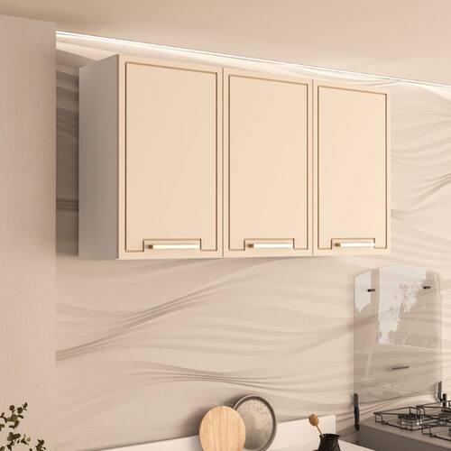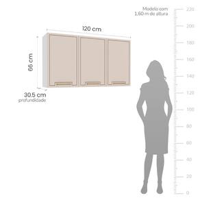 Armário Aéreo 120cm 3 portas Amara Branco Creme Politorno Móveis - Branco | Bege