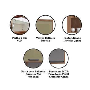 Informações Complementares: Portas Basculantes com Pistão à Gás 60N. Profundidade menor é de 22cm. Cada Base suporta 6kg. Distribua uniformemente os objetos.