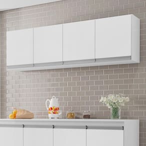 Temos o móvel ideal para dar uma cara nova para a sua Cozinha, confira o Armário Aéreo 150cm 4 Portas Andréia Branco, da AJL Móveis!