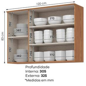 Armário Aéreo 2 Portas 120 cm. Requinte combina modernidade e versatilidade, criando um ambiente charmoso e acolhedor com seus tons amadeirados. Estrutura 100% MDP de 15mm (fundo em MDF de 3mm). 2 Portas com detalhes ripado e dobradiças metálicas de 25mm com fechamento suave e puxadores em alumínio. A pintura UV texturizada que proporciona um acabamento sofisticado e fácil de limpar. Este móvel chegará na sua casa separado em 01 volume.