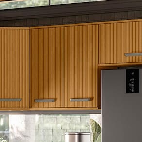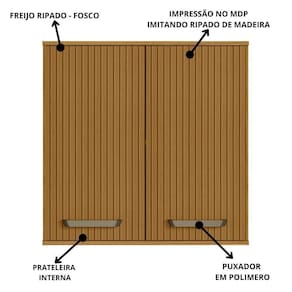 Armário Aéreo é ideal para otimizar espaço podendo ser sozinho ou como complemento da cozinha. Possui 2 portas de bater com acabamento ripado sendo impressão no MDP imitando ripado de madeira com acabamento fosco equipadas com dobradiças metálicas reforçadas de 35mm que garantem o fechamento suave das portas. Conta com uma prateleira interna, e puxadores bronze em polímero. Sua estrutura em MDP 15mm garante maior resistência e com proteção. Perfeita combinação com os mais variados ambientes.Este móvel chegará em sua casa separado em 01 volume.