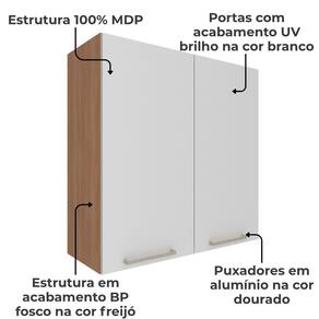 Armário Aéreo ideal para seu dia a dia. Produzido 100% em MDP de 15mm (fundo de 3mm) com acabamento em pintura UV (brilho) e BP (fosco) que garante durabilidade. Móvel suspenso com 2 portas equipadas com dobradiças reta caneco de 35mm e amortecedor slow motion, bordas em PVC que oferecem maior proteção e puxadores em alumínio. Perfeito para quem busca organização, funcionalidade e elegância para sua cozinha! Este móvel chegará na sua casa separado em 01 volume.