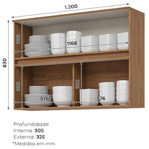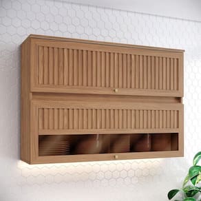 Armário Aéreo 2 Portas Basculantes Ripado com Vidro 120 cm Requinte Nature – Henn