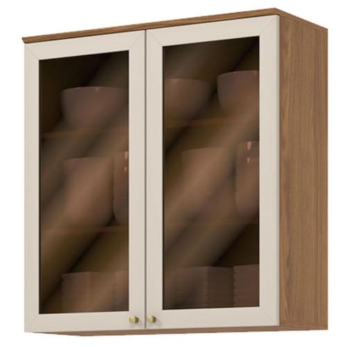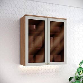 Armário Aéreo 2 Portas com Vidro 80 cm Requinte Nature Areia Hp – Henn