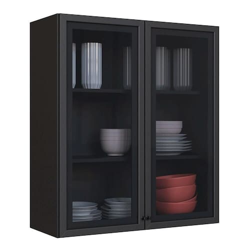 Armário Aéreo 2 Portas com Vidro Indekes Isa, Chumbo, 80 cm