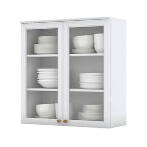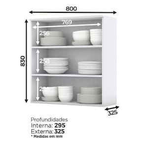 Armário Aéreo 2 Portas de Vidro 80 cm Americana Branco Henn