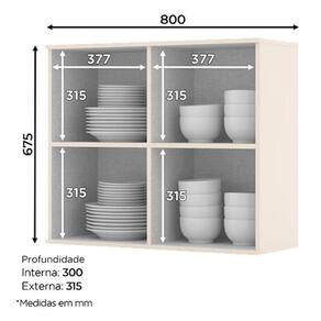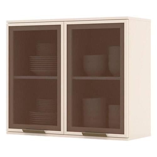 Armário Aéreo 2 Portas de Vidro 80 cm Connect Off White Henn