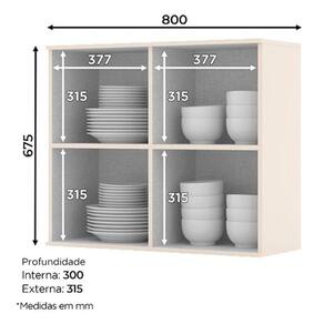 Armário Aéreo 2 Portas de Vidro 80 cm Évelin Off White Henn