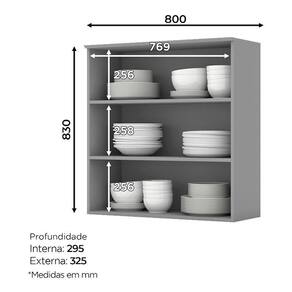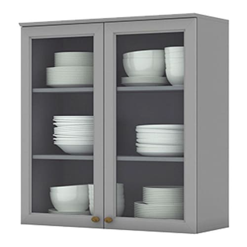 Armário Aéreo 2 Portas de Vidro 80 cm Nova York Cinza Henn