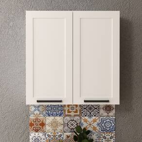 Características: Estrutura em MDF 2 Portas Puxadores em alumínio preto Porta almofadada Dobradiça reta Bordas em PVC Prateleira suporta até 3kg