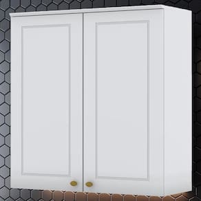 Armário Aéreo de 2 Portas 80 cm cozinha provençal seu conceito é inspirado nas clássicas cozinhas estilo americano. Estrutura 100% MDF de 15mm (fundo em MDF de 3mm), portas com dobradiças metálicas 35 mm com amortecimento e fechamento suave, frentes com usinagem em baixo relevo. A pintura UV texturizada proporciona um acabamento sofisticado e fácil de limpar, enquanto os puxadores em Metal Zamac agregam um toque de elegância e resistência. Sua interna conta com 2 prateleiras espaçosas, cada uma suportando até 8 kg, permitindo a organização de louças, mantimentos e utensílios com segurança. Este móvel chegará na sua casa separado em 01 volume.