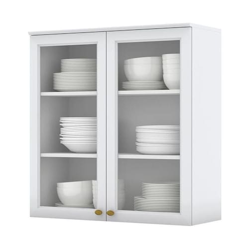 Armário Aéreo 2 Portas Vidro 80cm Americana Branco - Móveis Henn Branco Armário Aéreo 2 Portas Vidro 80cm Americana - Móveis Henn Os módulos da Cozinha Modulada Americana é uma linha clássica e atemporal, pensada para transformar esse ambiente no cantinho preferido do seu lar. Produzida 100% em MDF, na cor branco, uma pintura UV fosca, todas as portas e gavetas contam com usinagem em baixo relevo e os puxadores em zamac ouro velho garantem um charme extra a qualquer ambiente. ESPECIFICAÇÕES: - Estrutura 100% MDF - Pintura UV fosca - 2 Portas vidro - Vidro incolor - Dobradiças de 35mm com amortecimento - Puxadores em zamac ouro velho - Usinagem em baixo relevo