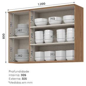 Armário Aéreo 3 Portas 120 cm Requinte Nature Henn