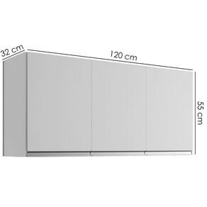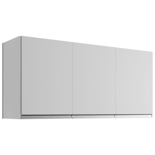 Armário Aéreo 3 Portas, compacto e funcional trazendo praticidade para sua cozinha. Estrutura em MDP (12/ 15 mm - fundo 3 mm). Composto por portas com dobradiças metálicas, 1 prateleira interna e puxadores em alumínio e acompanha kit para fixação na parede (verificar riscos de perfurações). Produto será entregue em 01 volume.