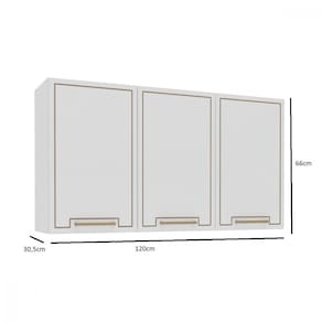 Armário Aéreo 3 Portas Amara Politorno Moveis O Armário Aéreo Amara da Politorno Móveis, com 3 portas, é perfeito para quem busca mais espaço e organização na cozinha sem comprometer a circulação do ambiente. Fabricado em MDP/MDF, ele garante resistência e durabilidade, enquanto o acabamento usinado confere um toque moderno e sofisticado. Seu revestimento em FF/UV protege contra umidade e facilita a limpeza, tornando o dia a dia mais prático. Os puxadores em alumínio agregam elegância e robustez ao design. Com 66 cm de altura, 120 cm de largura e 30,5 cm de profundidade, esse armário aéreo oferece amplo espaço interno para armazenar louças, utensílios e mantimentos, unindo funcionalidade e estilo para compor cozinhas bem organizadas e sofisticadas.