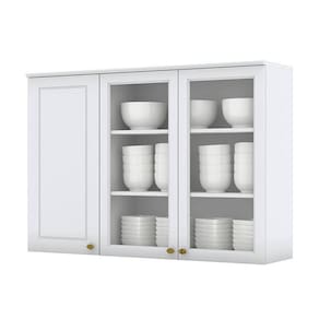Armário Aéreo 3 Portas com Vidro 120 cm Nova York Branco Henn