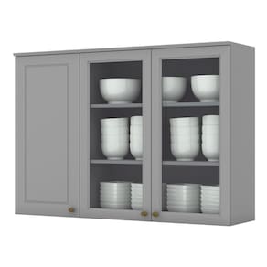 Armário Aéreo 3 Portas de Vidro 120cm Americana - Móveis Henn Os módulos da Cozinha Modulada Americana é uma linha clássica e atemporal, pensada para transformar esse ambiente no novo cantinho preferido do seu lar. Produzida 100% em MDF, uma pintura UV fosca, todas as portas e gavetas contam com usinagem em baixo relevo e os puxadores em zamac ouro velho garantem um charme extra a qualquer ambiente.