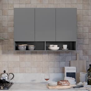 Armário Aéreo 3 Portas e 2 Nichos Milão Cinza EJ Móveis